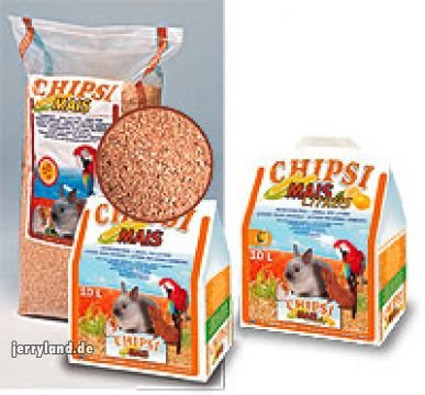 Litière hygiénique Granulés pour oiseaux et petits animaux.La litière hygiénique Chipsi maïs est fabriquée à base d'épis de maïs 100 % naturels. Idéale pour petits rongeurs, lapins, chinchillas, furets, oiseaux, etc.Produit hygiénique et ultra absorbant. Plus lourd que les copeaux de bois, elle ne s'adhère donc pas aux pattes, pelage ou plumes des animaux, et s'éparpille plus difficilement hors de la cage.Ne contient aucun arômes artificiels, mais laisse un parfum naturel de maïs. La litière préserve la propreté à l'intérieur de la cage et le lit sec pour votre animal de compagnie.Proposé en sachets de 10 litres très pratiques et grands sacs de 15 kg.Peut s'utiliser pour petits animaux et oiseaux domestiques....