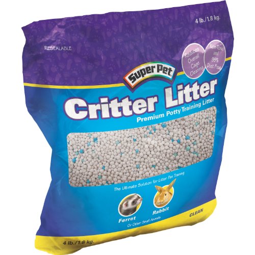 " Critter Litter is a a new premium-quality potty training pear for spot training ferrets, rabbits, pet rats and other small animals. It is specially formulated to be 99% dust-free and super absorbent and is made from all natural non-toxic minerals. Critter Litter absorbs moisture on contact and inhibits the bacteria that cause pet waste odors. In combination with a potty training program, Critter Litter will reduce cage cleaning by 30% or more!"